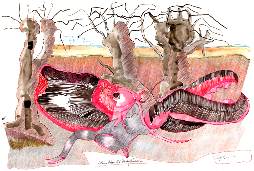 Selbstverachtung in die tosenden Fluten - erzeugt durch frisch geteerte Schleppkähne und martialische Raddampfer - in heroischer Absicht (entgegen der